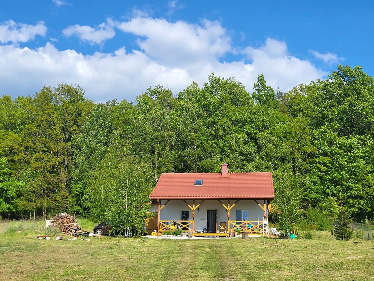 Charmantes Haus (4 Personen, komfortabel 6 max.) mit einzigartiger Aussicht im Górznieńsko-Lidzbarski Landschaftspark. Montage über dem malerischen Dorf Fiałka. Rund um eine Wiese, ein Wald und ein See. Chance, dass sich Wild beim Haus sammelt, hörst du die Eisbahn. Attraktive Wander- und Fahrradrouten. Eine Unterkunft, die für einen ganzjährigen Aufenthalt geeignet ist, einschließlich Menschen mit Behinderungen. Voll ausgestattet. Fußbodenheizung und Kamin. Überdachte Terrasse. Feuerstelle, Hängematten. Angrenzend an die Unterkunft des Gastgebers.